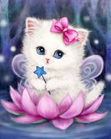 Beautiful White Fairy Kitten on Pink Flower Diamond Painting Art