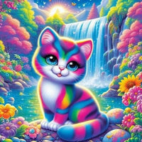 Rainbow Kitten with Flowers and Waterfall - DIY Painting